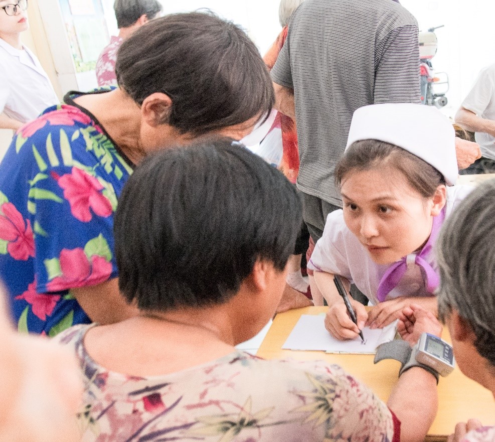 On July 8, 2019, the volunteer team went to Xiangming Village, Baoding City, Hebei Province to carry out a 9-day social practice activity. On the afternoon of July 13, the volunteers were divided into two teams to make home visits before the free clinic. They enthusiastically told the villagers the time and place of the free clinic and handed out health booklets. On the morning of July 14, the medical team carried out a free clinic. The volunteers patiently answered the villagers’ questions and took them to the doctor for physical examination and medicine. The free clinic helped promote the health awareness of the villagers and improve their health behaviors.