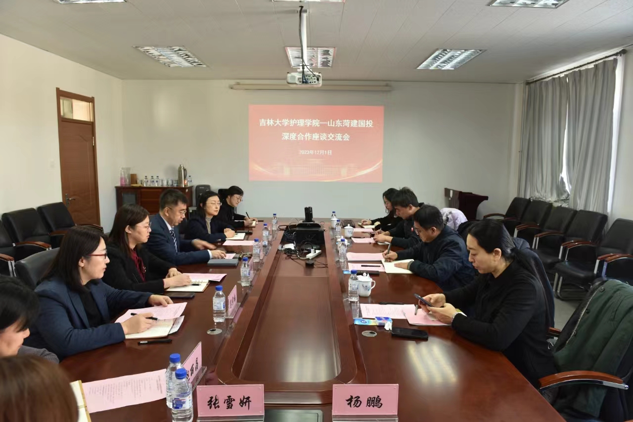 2023年12月1日上午,山东菏建国有资本投资有限公司(以下简称:山东菏建)董事长仝金安一行到学院就校企深度合作、护理及康复专业人才培养模式创新、学生实习就业等进行调研交流。学院党委书记韩月波,副院长李峰,党委副书记兼副院长、纪委书记葛宗梅,副院长李昆,以及康复治疗学教研室主任赵丽晶教授、康复治疗学教研室教师郭丽荣教授参加会议。会议由李峰主持。