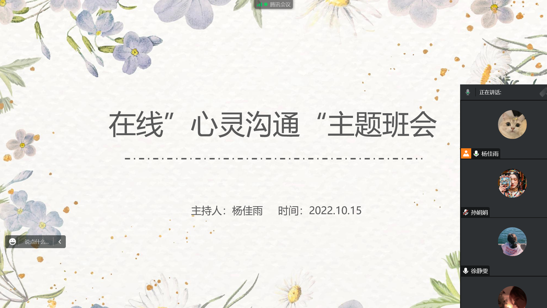 2022级研究生班级于10月15日晚18:30在线上开展了新生团体心理辅导活动——线上“心灵沟通”主题班会。本次活动由肉番动漫