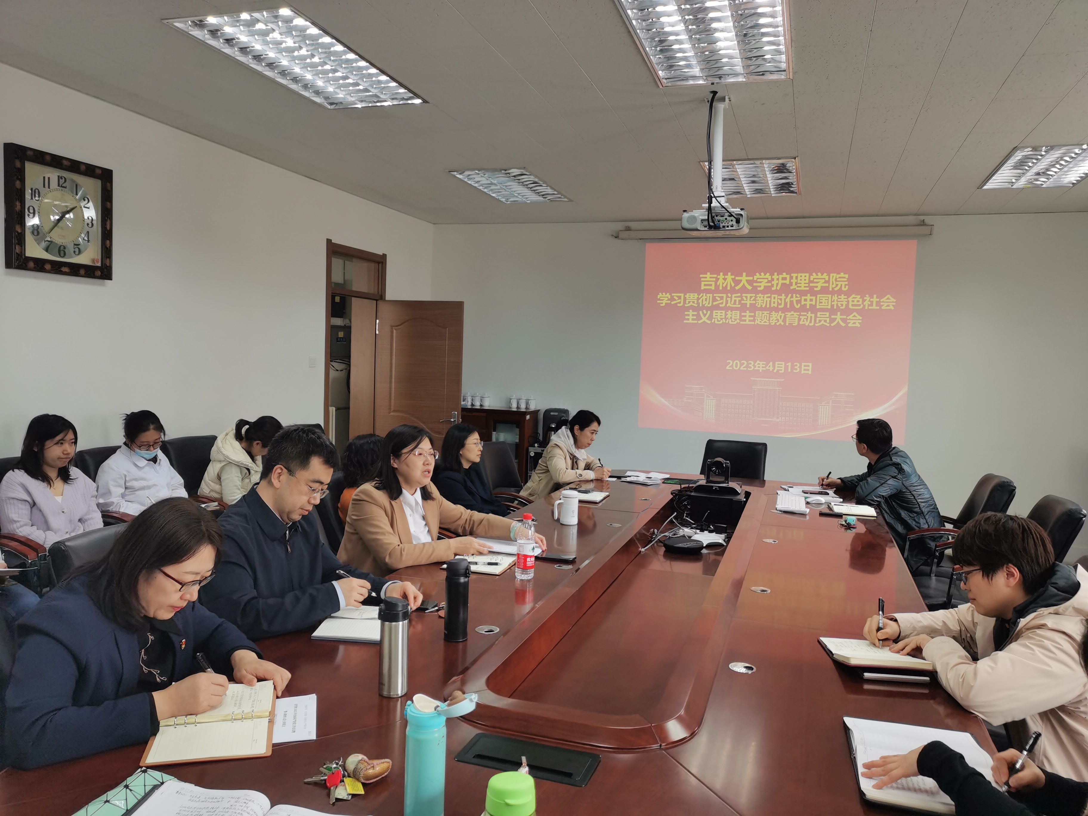 全体教职工参加会议。