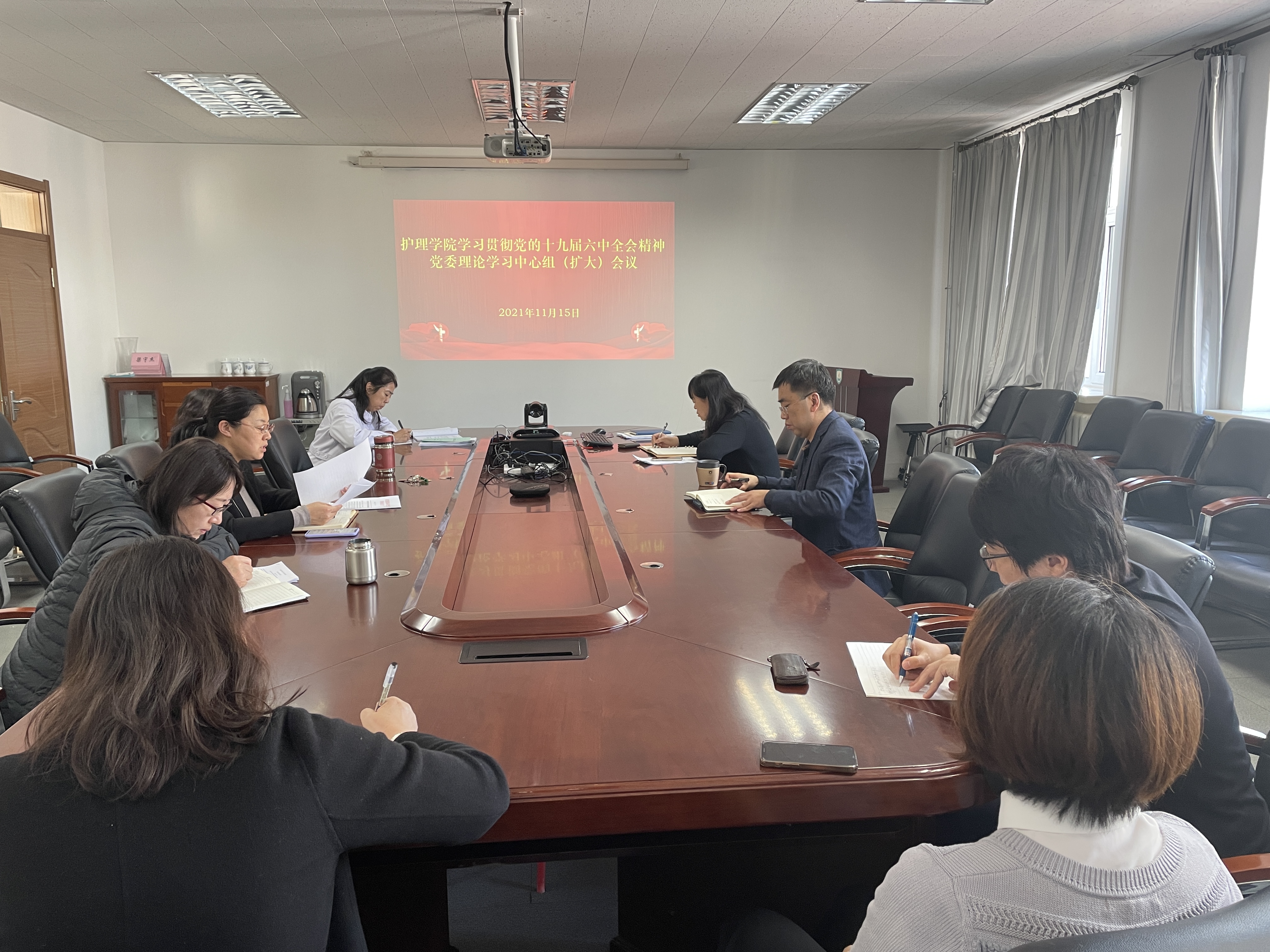 党委召开党委理论学习中心组学习(扩大)会议,中心组全体成员、各支部书记参加会议,会议由韩月波书记主持。