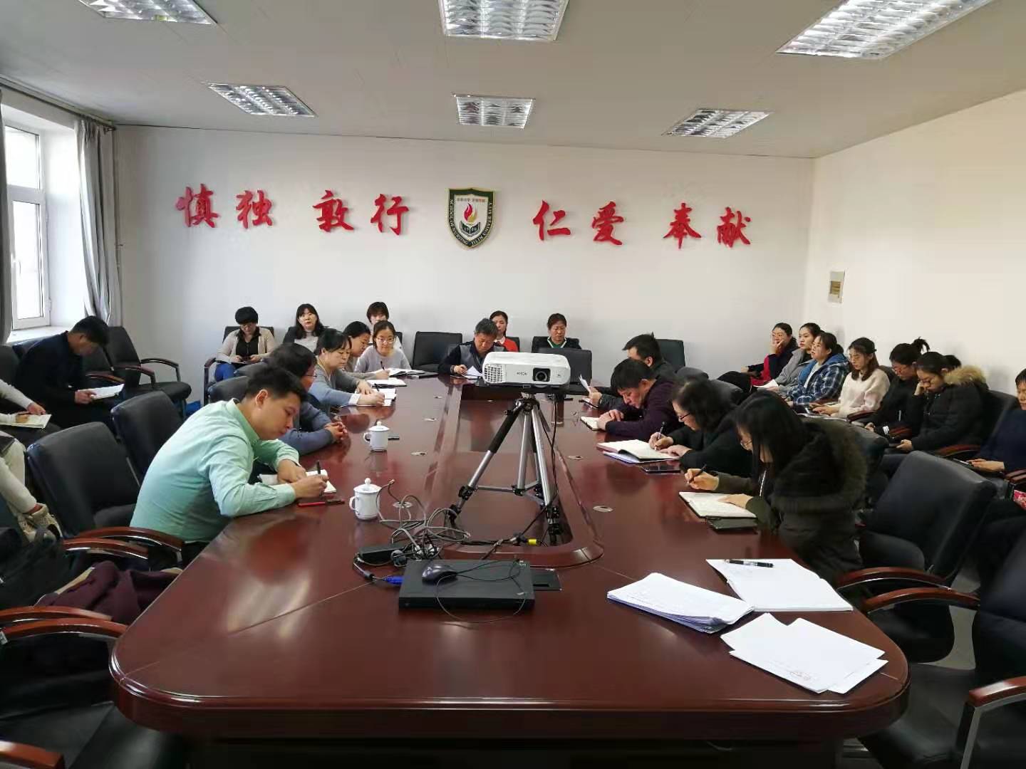 在三楼会议室召开“不忘初心、牢记使命”主题教育评估测评会。学院领导班子、各教研室科室主任、全体教工党员及学生党员代表,校第十指导组季洪涛同志、高文松同志参会。会议由学院党委书记席海涛同志主持。