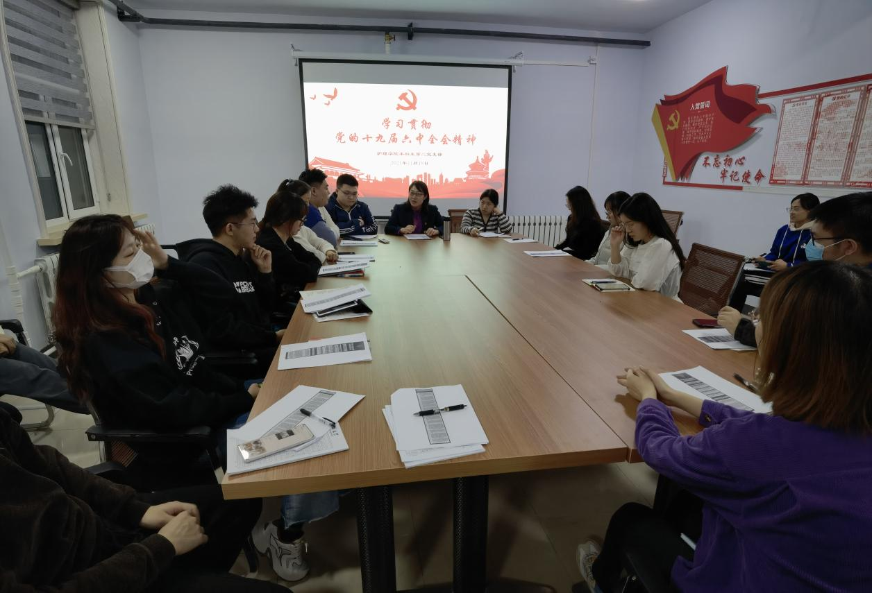 本科生第二党支部于11月18日晚在学生党员活动室召开了学习贯彻党的十九届六中全会精神会议。学院党委副书记兼副院长葛宗梅和支部党员参加了本次会议。