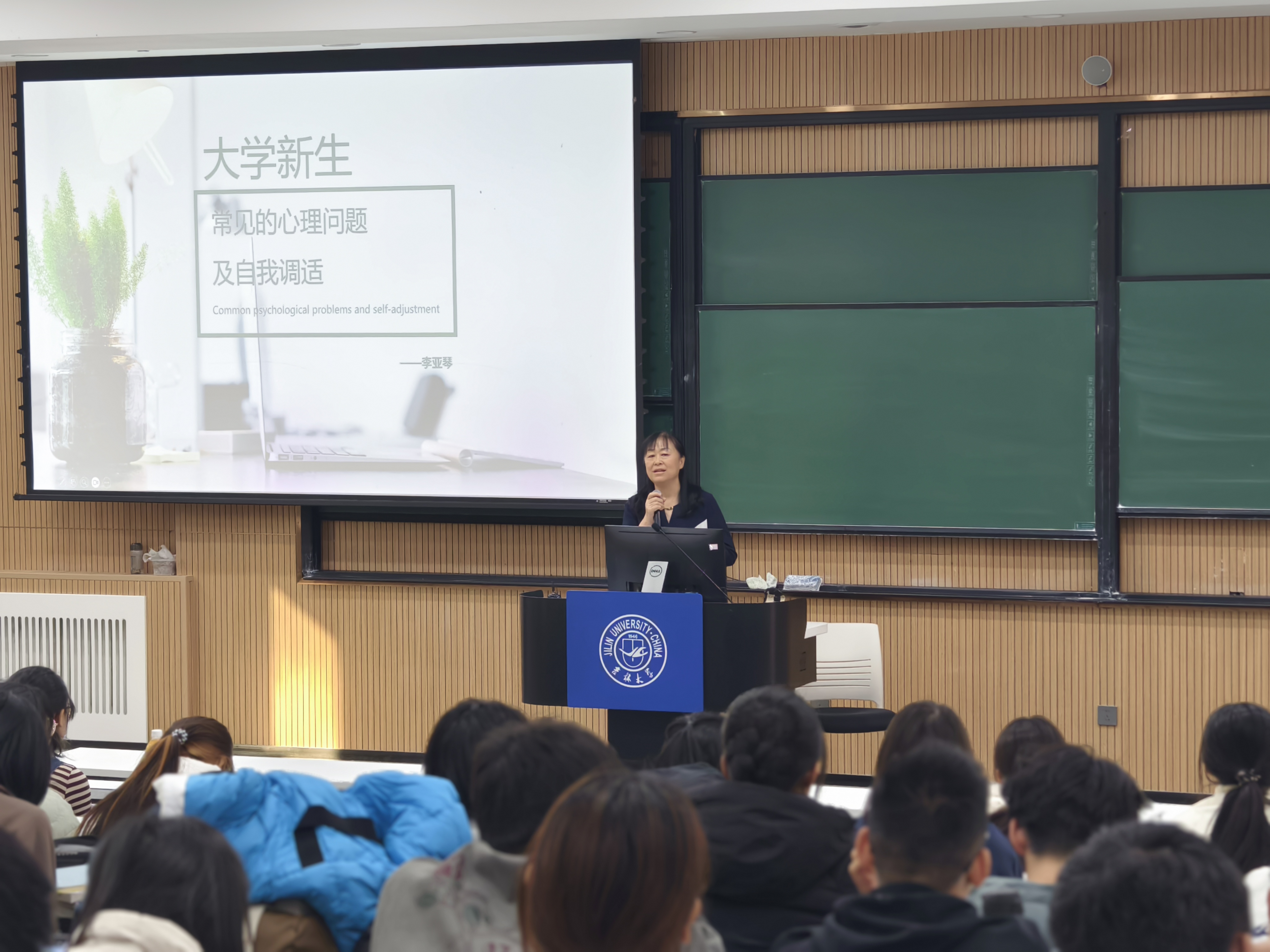 的学生连在一起。同学们纷纷为之动容。随后,她深入浅出地讲解了心理健康相关知识,包括心理健康的定义、大学生心理健康的标准、如何保持学习兴趣、如何协调情绪、如何保持人际关系和谐等。
