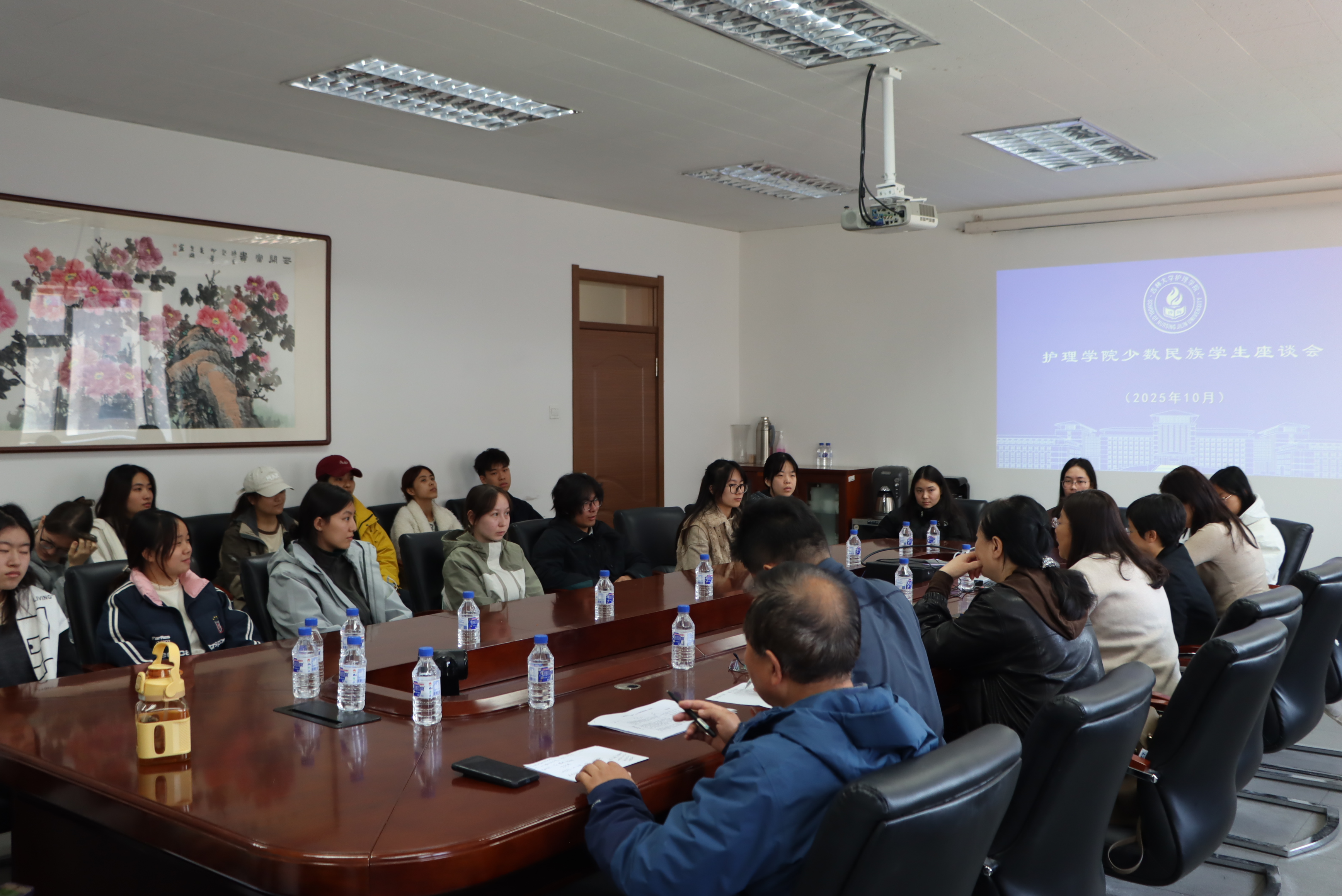 韩月波充分肯定和鼓励少数民族同学在校期间取得的成长与进步,也对大家未来的发展提出了殷切期望。李亚琴结合学院往届毕业生成长发展情况,对同学们职业规划、提升核心就业竞争力给予指导。单志军结合护理实操能力提升给予指导,并鼓励同学们找准自身发展方向。赵凤君针对同学们提出的学业难题,提供了英语听力、口语能力提升的可行建议。